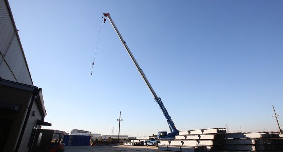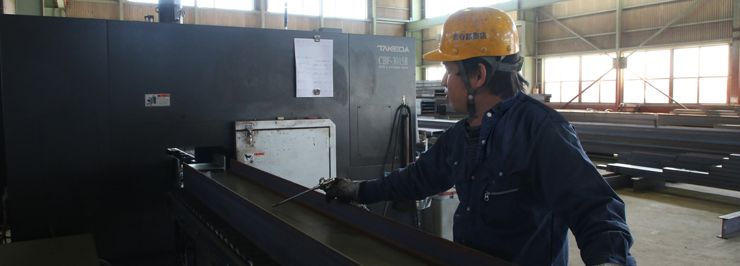 グループ会社「株式会社山崎製作所」にて、当社で一次加工した鋼材を使用し鉄骨製作を一貫した流れで製作しています。